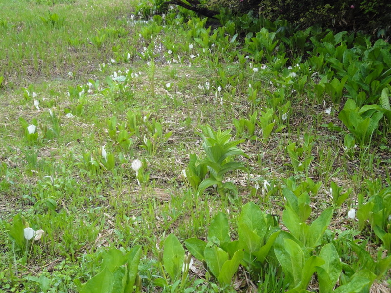 水芭蕉がまだすこし咲いてる