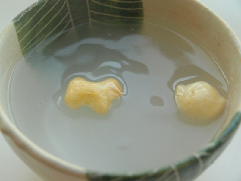 いぬと桃のあられ入り葛湯。あったまりました~